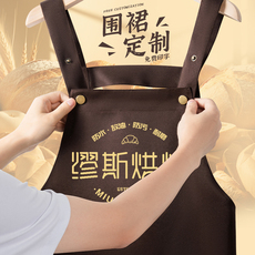 围裙厨房餐饮画画美发师烘焙咖啡店logo定制男女服务员牛仔工作服