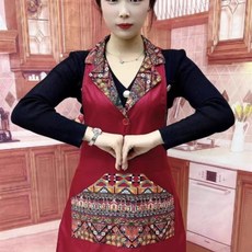 复古民族风围裙女款厨房家用餐饮餐厅食堂饭店服务员上班工作服