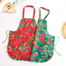东北大花围裙家用厨房做饭围腰防污耐脏餐饮服务员男女工作服喜庆