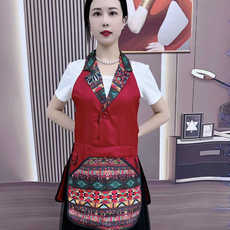 中式民族风采茶舞蹈表演围腰农家乐茶楼火锅饭店厨房服务员围裙
