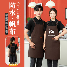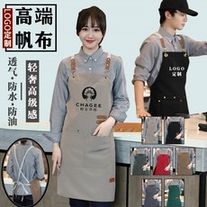 帆布围裙厨房做饭防水防污奶茶咖啡餐饮服务员工作服印字logo