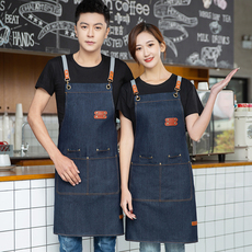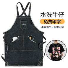 牛仔围裙家居奶茶西餐厅酒吧厨房男女工作服务员印字定制logo咖啡