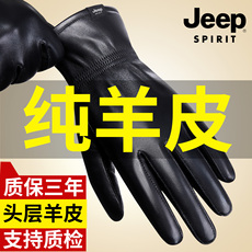 jeep吉普男士绵羊皮手套冬季骑车摩托车保暖加绒真皮骑行手套男冬