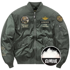 90%白鸭绒厚实日本进口纱防泼水防风拉链工装插肩羽绒服男军绿色