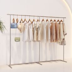 服装店专用展示架陈列架挂衣架不锈钢女装店奶白色落地式衣架货架