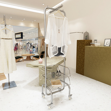 简约服装展示架落地带滚轮不锈钢拉丝银女装店铺货架展示架挂衣架