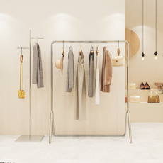 服装店展示架落地式陈列架不锈钢货架可伸缩可移动家居商用挂衣架