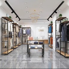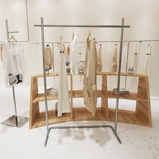 服装店展示架胡桃色上墙货架不锈钢服装架落地衣架女装中岛陈列架
