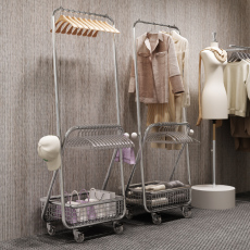 服装店展示架可移动带轮落地衣帽架带篮筐直播间陈列女装挂衣架子