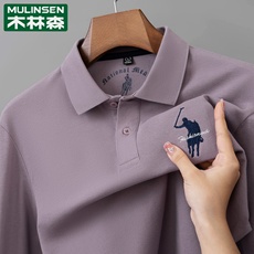 木林森Polo衫男士2025新款刺绣翻领丝光长袖商务百搭T恤男装上衣