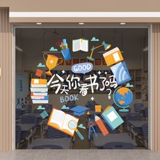 图书馆可爱励志装饰贴纸玻璃门贴纸图书馆书店阅读室宣传玻璃贴纸