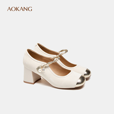 奥康 女鞋2025冬季新款法式小短靴女高跟鞋踝靴粗跟白色瘦瘦靴子