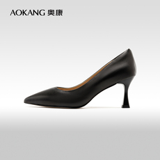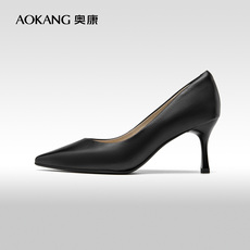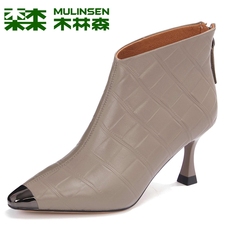 木林森女靴冬季尖头细跟短靴女羊皮英伦时装靴真皮简约高档马丁靴