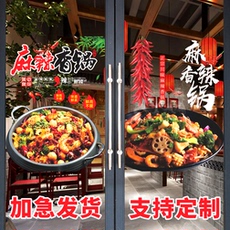 麻辣香锅海报玻璃门贴纸冒菜麻辣烫橱窗透明静电贴装饰墙贴壁画图