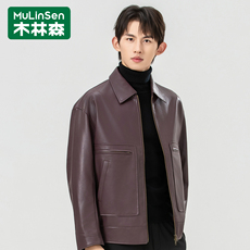 木林森男士秋季新款翻领皮衣春秋商务休闲皮夹克中年外套V3