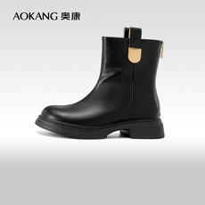 奥康 女鞋2025冬季时装靴复古圆头英伦风显瘦显腿直时尚增高短靴
