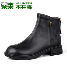 木林森女鞋冬季羊皮休闲英伦风后拉链短靴真皮百搭防滑女士马丁靴