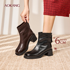 奥康 女鞋2025冬季时装靴酷飒方头粗跟增高职场通勤利落短靴