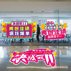 双十一电商装饰贴纸海报办公室职场激励口号橱窗玻璃门墙贴画地贴