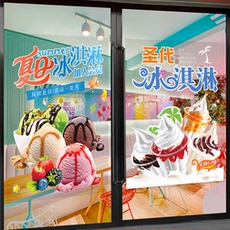 冰淇淋奶茶汉堡店玻璃贴网红夏季冷饮冰激凌雪糕橱窗门装饰静电贴