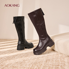 奥康 女鞋2025冬季新款复古时装靴保暖加绒显瘦瘦靴增高烟筒靴子