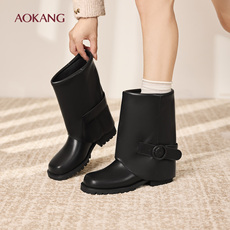 奥康 女鞋2025秋冬季裤管靴厚底增高宽大筒围堆堆靴西部短靴