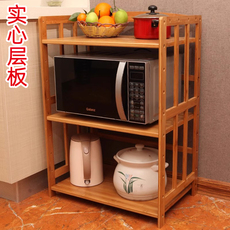 楠竹厨房置物架微波炉架烤箱架收纳架储物架锅架落地3层实木架子