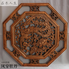 东阳木雕中式装修八角形挂件圆形仿古花格门窗电视背景雕花板现货