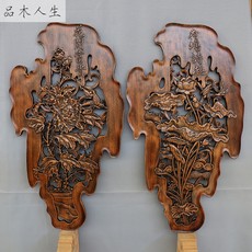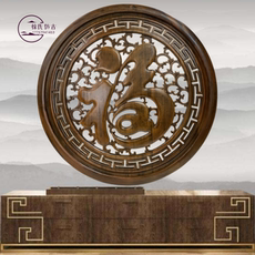香樟木屏风挂件新中式仿古木雕客厅电视背景墙装饰实木门镂空隔断