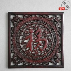 东阳木雕中式仿古香樟木雕刻正方形红木色福字挂件客厅背景墙壁挂