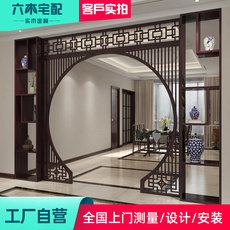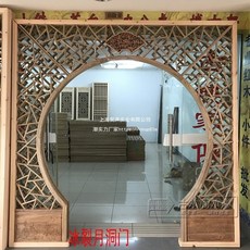 爆款木雕实木花格月洞门新中式客厅隔断月亮门仿古屏风拱门博古架