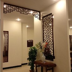 中式实木花格隔断挂落吊顶玄关仿古门窗屏风木雕电视背景墙角花