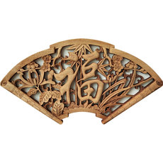 东阳实木雕刻镂空花格中式仿古装饰画福字挂件中国结扇形客厅壁饰