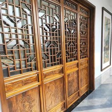 定制中式木雕仿古门窗实木窗户花格客厅走廊玄关隔断吊顶背景墙