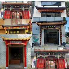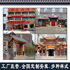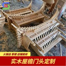 仿古实木门头中式飞檐木雕花假房檐牌坊I斗拱饭店火锅店装修中医
