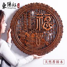 东阳木雕挂件中式仿古圆形玄关客厅实木壁挂家居装饰工艺品香樟木