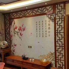 东阳木雕定做仿古花格现货中式仿古玄关隔断实木电视背景墙吊顶