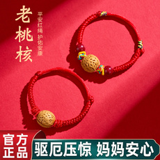 成人宝宝婴儿童桃核桃胡桃篮木防惊吓五彩红绳手链本命年红绳脚链