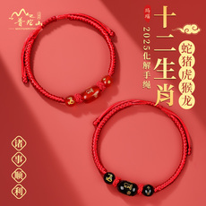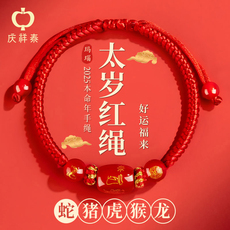 周六福黄金手链女定价5d硬金十二生肖蛇年宝宝足金本命年红绳礼物