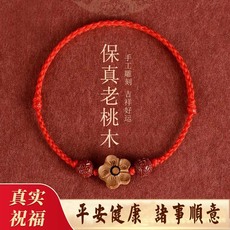 天然老桃木手串红绳手链男女本命年转运婴儿童防惊吓上岸竹节手绳