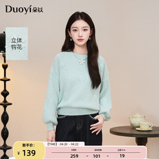 朵以2025冬季新款慵懒菱格立体花朵钩花圆领针织衫短款宽松毛衣