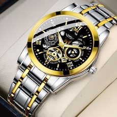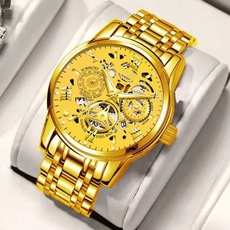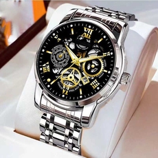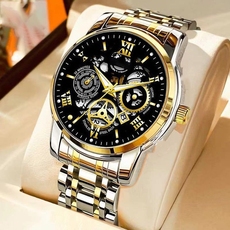 手表男全自动非机械表钢带男款商务防水石英腕表正品名牌镂空男士