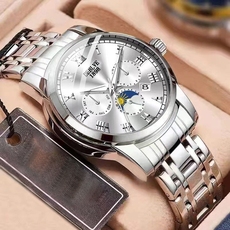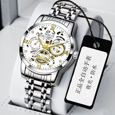 男士手表男正品名牌全自动非机械表钢带男款商务防水石英腕表老人