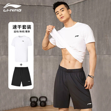 李宁速干T恤夏季冰丝运动短袖男款跑步短裤男士训练套装速干衣