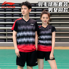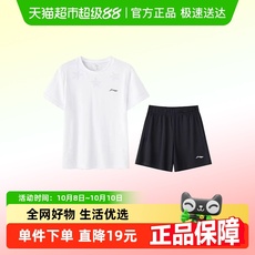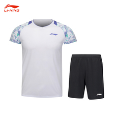 李宁运动套装球服比赛羽毛球服短袖短裤套装速干凉爽俱乐部系列
