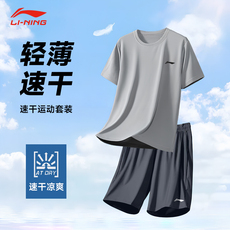 李宁运动套装男士速干t恤短裤 夏季冰丝跑步健身透气轻薄半袖上衣