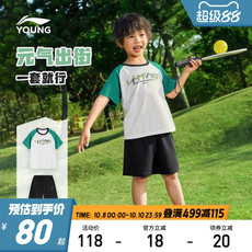 李宁童装套装男女小大童新款运动生活系列舒适休闲短袖短裤运动服