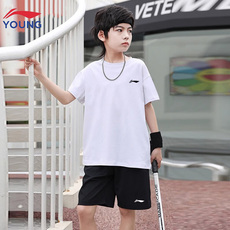 李宁青少年羽毛球服套装2025速干T恤短袖短裤比赛训练童装运动服