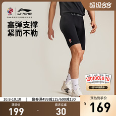 李宁CBA球员版紧身五分裤男运动健身专业篮球短裤高弹训练七分裤