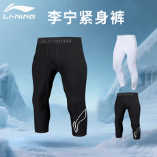 李宁健身裤新款篮球紧身跑步运动七分打底裤高弹压缩裤速干短裤男